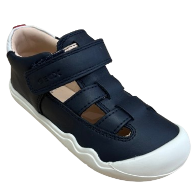 Los modelos barefoot de Geox se distinguen por una suela delgada y muy flexible, con zero drop, que permite una pisada plana y acompaña el movimiento natural del pie. Están fabricados en piel suave, sin contrafuerte rígido ni sistemas anatómicos invasivos, de forma que el pie puede torsionar y flexionar con libertad, algo clave en un calzado respetuoso para bebés y niños pequeños. La puntera es amplia y reforzada, con forma más cuadrada, para que los dedos tengan espacio real de movimiento y no sufran presiones mientras el peque explora.