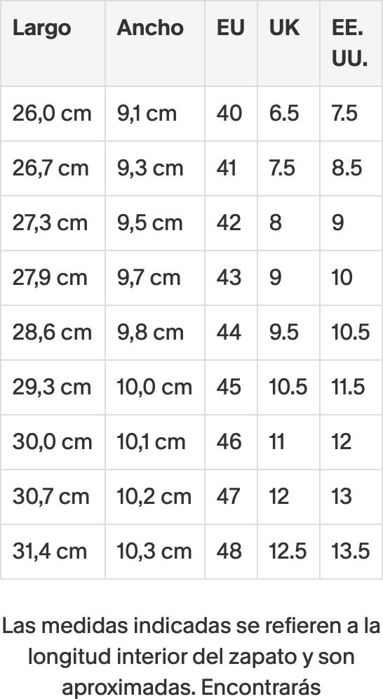 - Este modelo talla una talla menos (recomendable elegir una más)